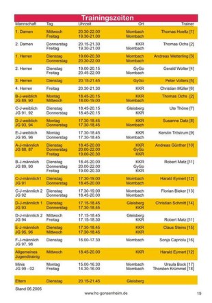 Trainingszeiten und -orte
