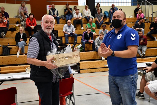überbrachten der Präsident des Handballverbandes Rheinhessen, Klaus Kuhn, die Ortsvorsteherin Sabine Flegel, der Vorsitzende des Vereinsrings Gonsenheim Joachim Meyer und der Vorsitzende des Stadtsportverbandes Alexander Reinemann.